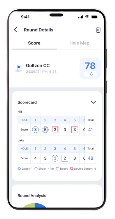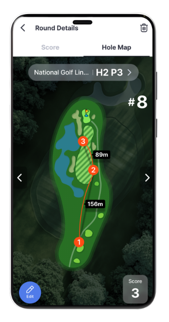After completing a round, you can review each shot's location and strategic route in detail through shot tracking records.