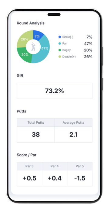 Review shot tracking and detailed statistics in the mobile app after your round.